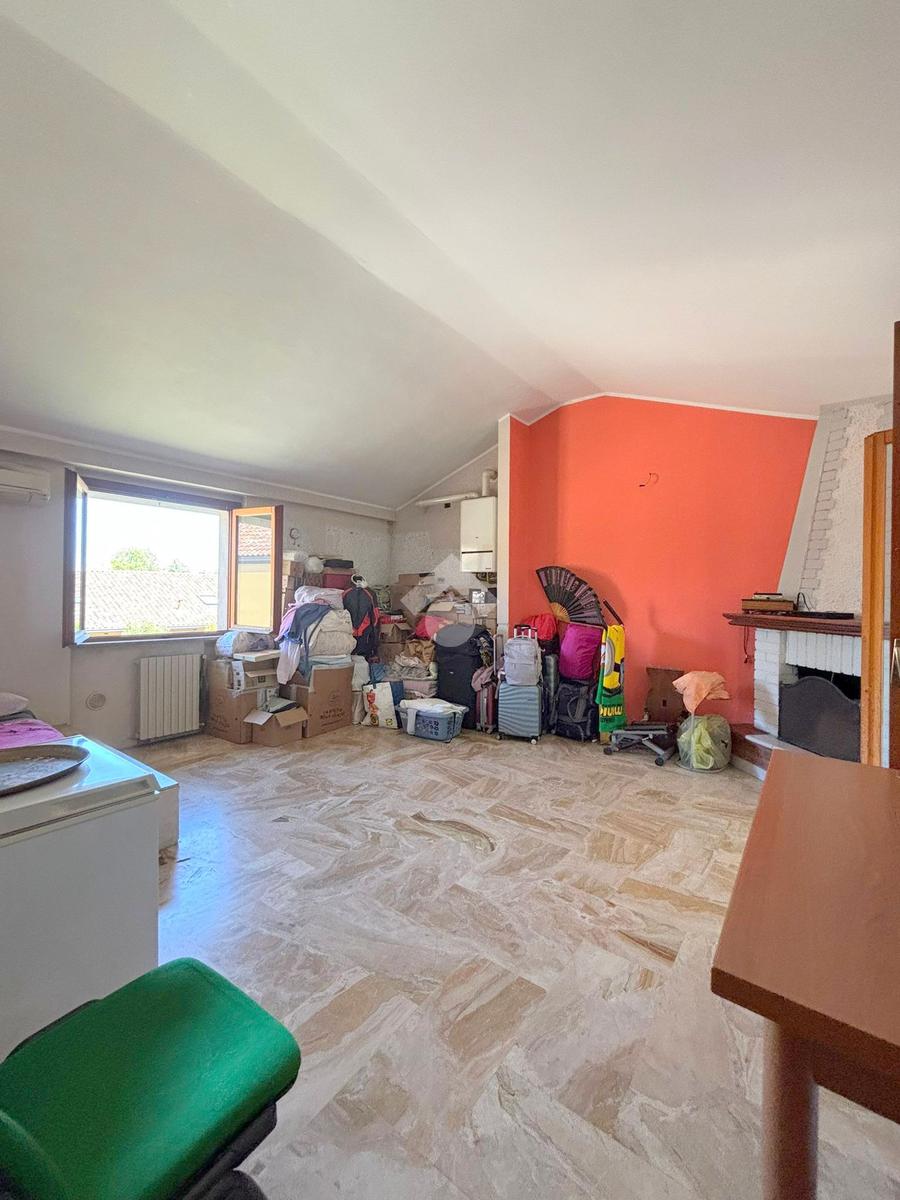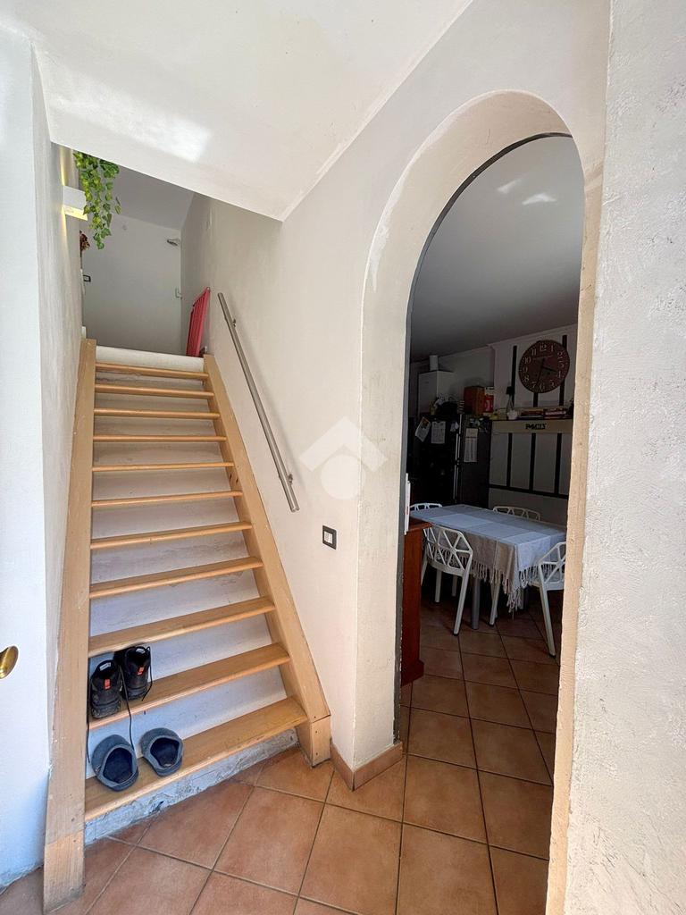 Al piano terra troviamo soggiorno con accesso all'area di proprietà, cucina abitabile e bagno finestrato. Attraverso delle scale interne si accede al piano superiore dove ci accoglie un soggiorno, camera da letto matrimoniale, bagno finestrato e locale sottotetto adibito a studio/camera.