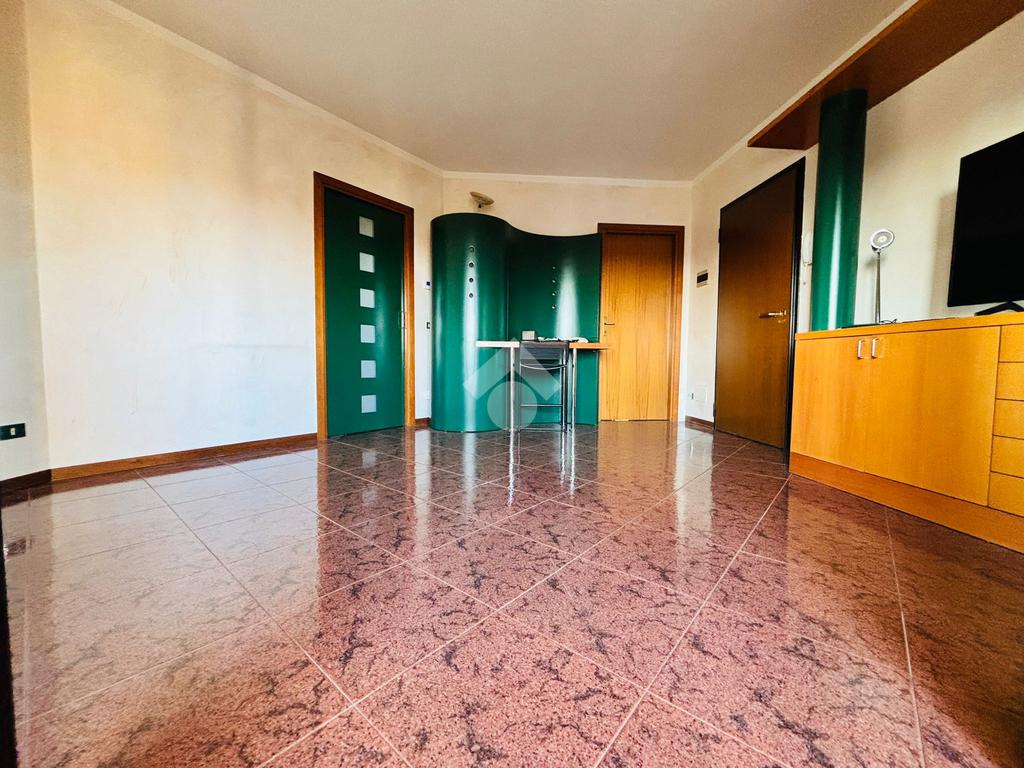 Ingresso in spaziosa zona living dove troviamo il soggiorno con accesso al terrazzino, ampia cucina abitabile con secondo balcone.